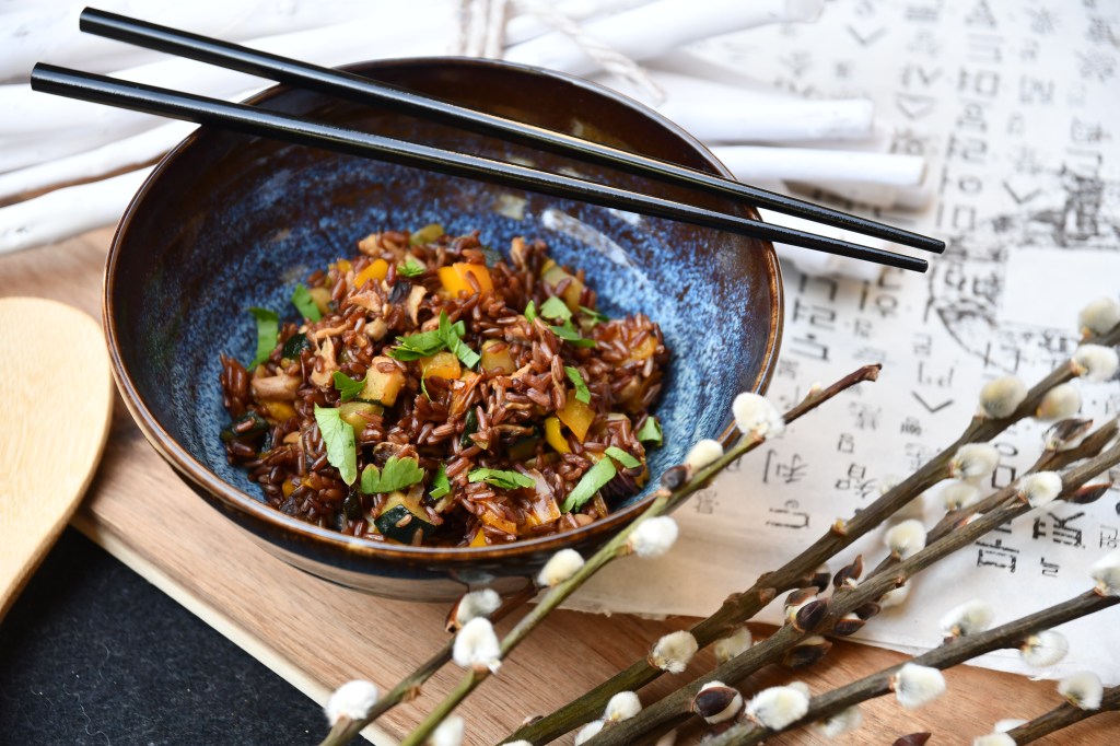 - Wok-Pfanne mit Pak Choi und Pilzen