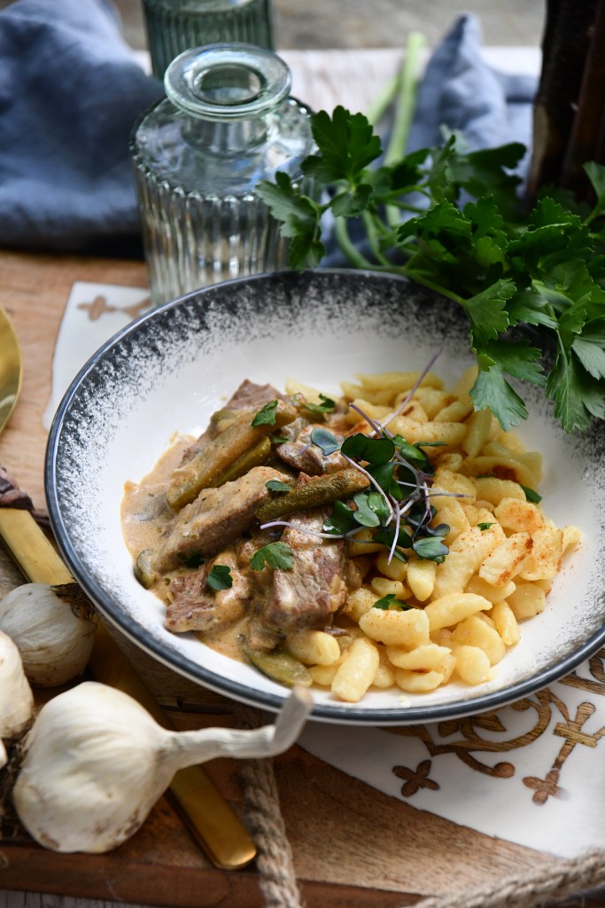 - Solo-Spargel mit Schweinefilet und Cognac-Schnittlauch-Sauce